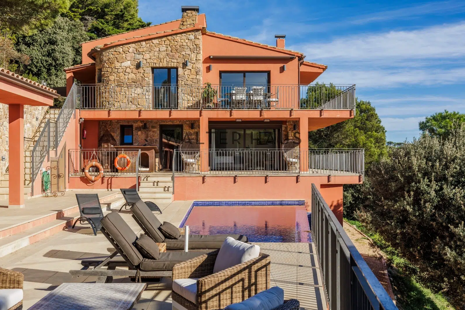 Situada a solo unos minutos caminando del centro de Begur, con una superficie construida de 499m2 sobre una parcela de 2232 m2 y reformada en 2023, esta casa ofrece una ubicación ideal, con total privacidad y vistas panorámicas a la bahía de Aiguablava, uno de los paisajes más exclusivos de la zona.