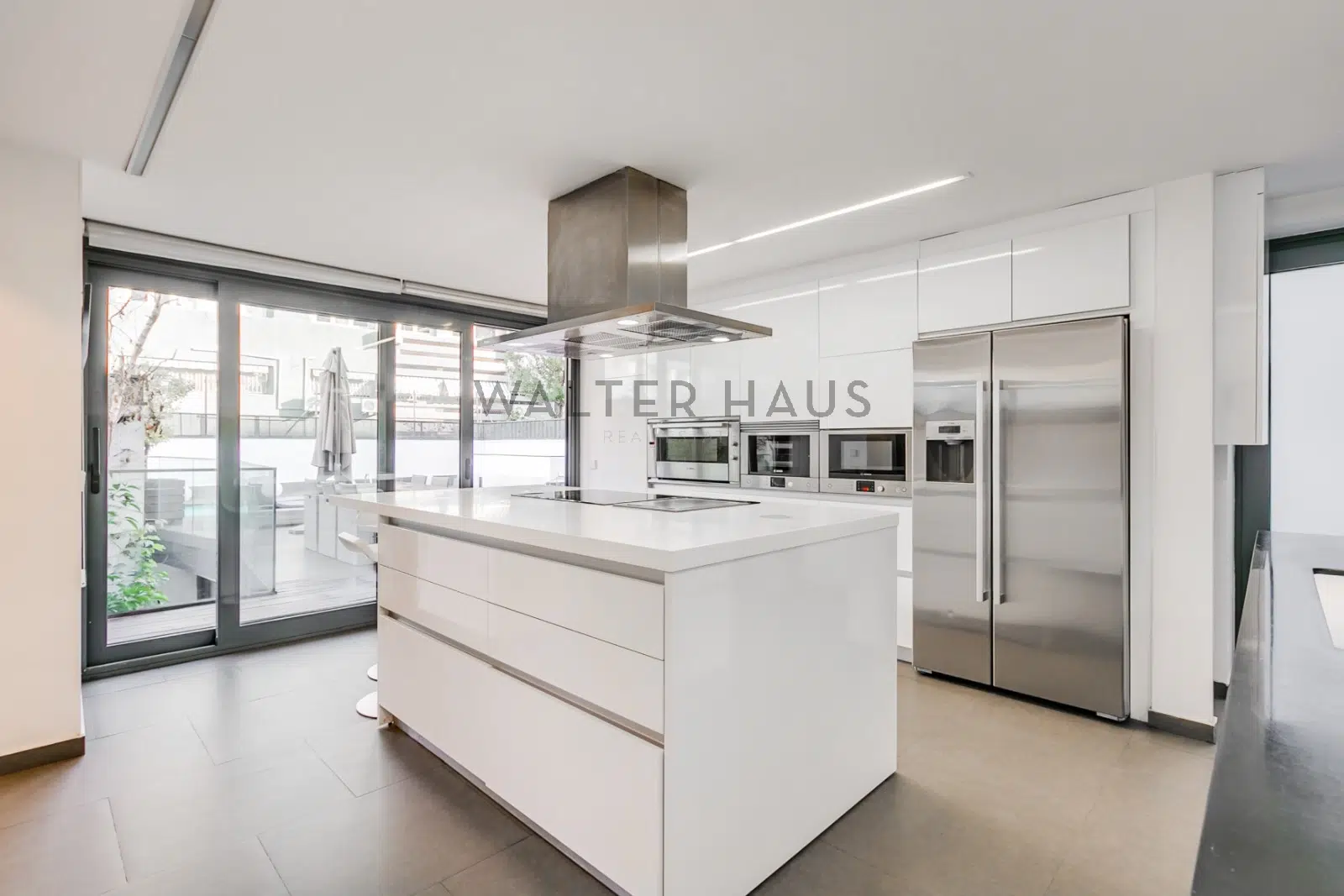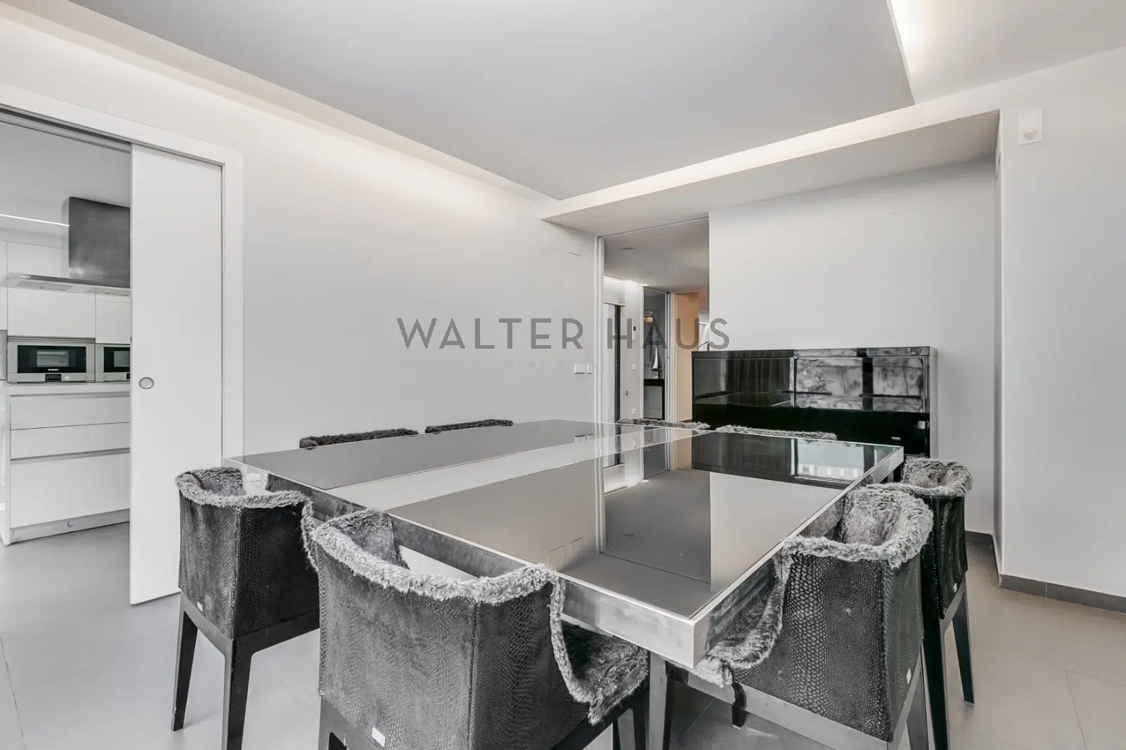 En la planta baja, un hall de entrada, un aseo de cortesía, un salón en dos alturas, un comedor independiente y una cocina completamente equipada con electrodomésticos de alta gama, con acceso directo a la zona de la piscina, completan el espacio.