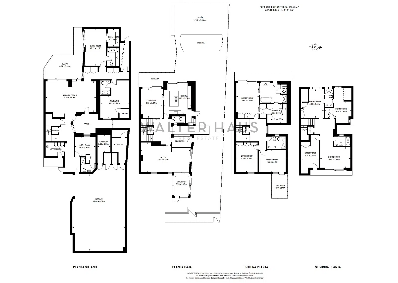 La primera planta alberga 3 habitaciones y dos cuartos de baño, destacando la habitación principal en suite con vestidor y terraza exterior. La última planta ofrece 3 habitaciones adicionales con armarios empotrados, dos cuartos de baño y una sala de estar luminosa con acceso a la terraza.