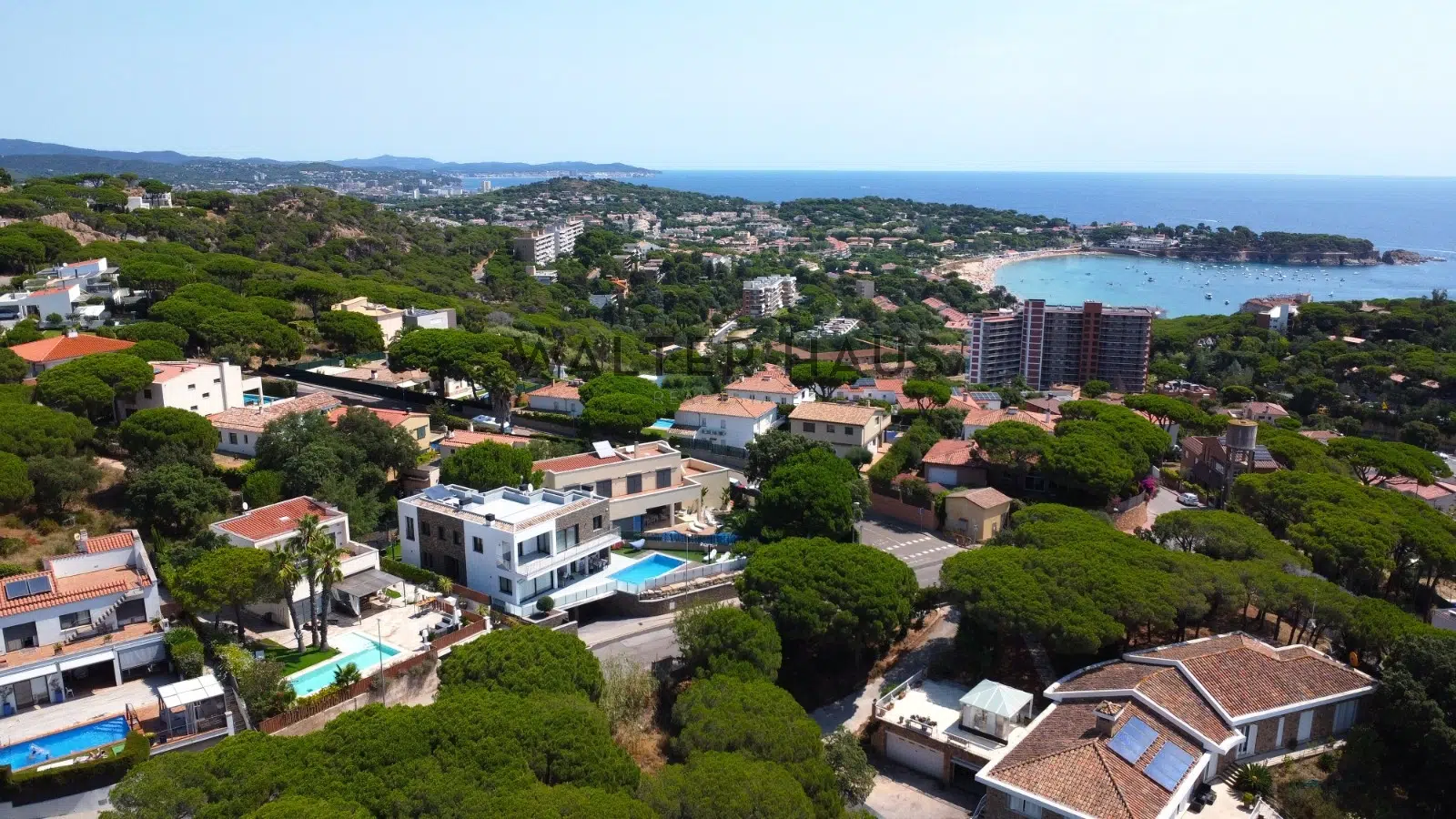 La planta principal incluye una habitación doble con vestidor y baño completo, ideal como dormitorio de invitados o baño de cortesía. En esta misma planta, el salón-comedor y la cocina se abren al jardín con piscina orientada al sur, creando un espacio luminoso y acogedor gracias a los grandes ventanales que permiten la entrada de luz natural durante todo el año. En cuanto a los acabados y equipamiento, la casa cuenta con suelos de mármol, aire acondicionado por splits en todas las estancias, cocina con electrodomésticos de alta gama y un lavadero con acceso directo al jardín. Las puertas correderas entre la cocina y el comedor permiten una mayor versatilidad según el tipo de reunión. En la planta superior se encuentran tres dormitorios dobles con vestidor y baño completo, uno de ellos en suite con bañera redonda. Dos habitaciones tienen salida a una terraza con vistas despejadas a Sant Feliu de Guíxols. En la azotea, accesible por escalera exterior, se puede habilitar un espacio chill-out o comedor exterior con vistas al mar Mediterráneo. La planta baja ofrece un gimnasio totalmente equipado, sauna, un baño completo y un garaje con capacidad para varios vehículos. Su distribución práctica, la luminosidad de sus estancias, el jardín privado con piscina y barbacoa, así como su cercanía al mar y a servicios esenciales, la convierten en una opción atractiva para quienes buscan confort, privacidad y conexión con el entorno.