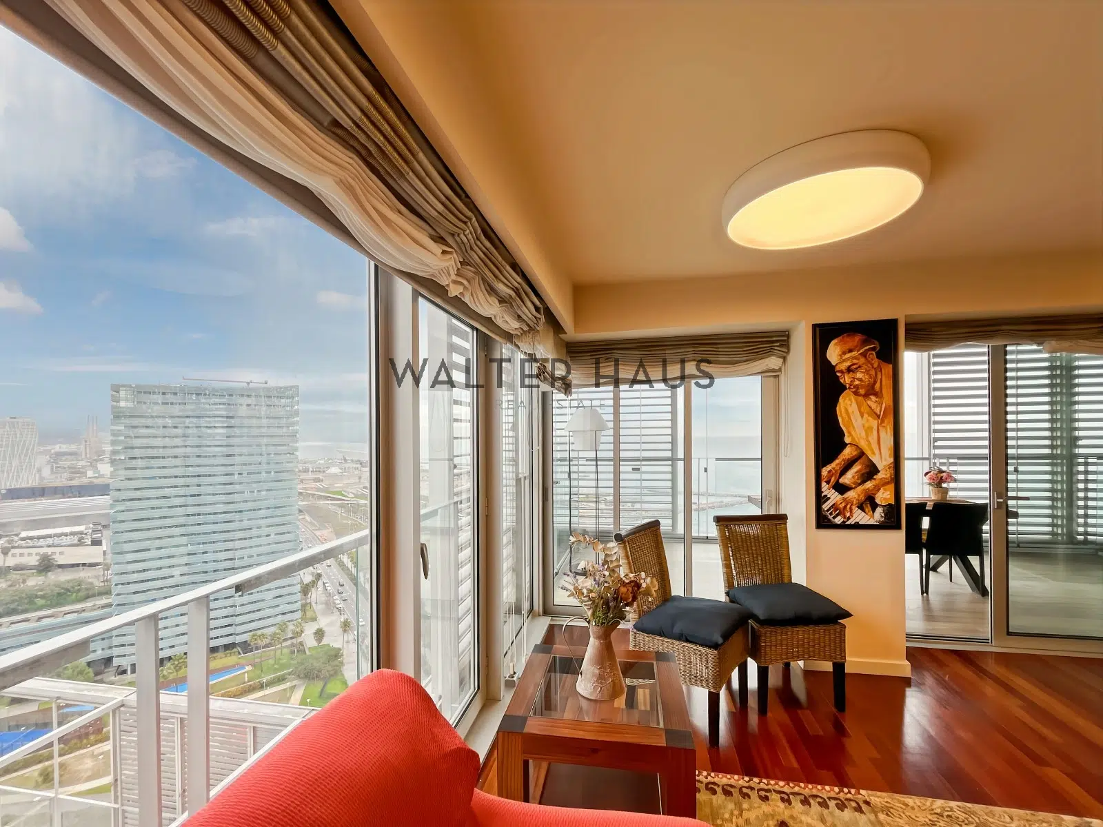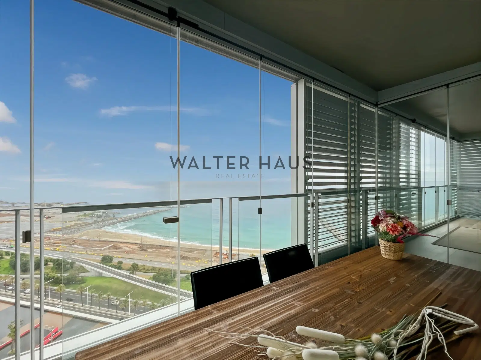Soleado piso de 140 m2 rodeado de una gran terraza con cerramiento de cristal con unas vistas privilegiadas al mar y a la ciudad, en la exclusiva urbanización Illa de la Llum en Diagonal Mar.