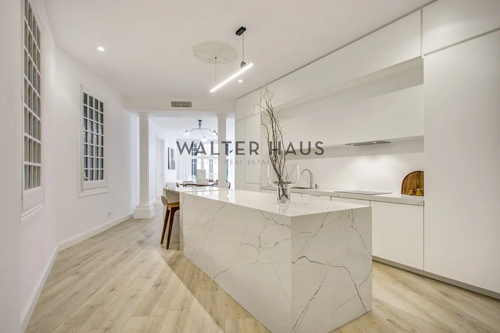 Esta vivienda se sitúa en la emblemática Vía Laietana, en el centro histórico de Barcelona, dentro de la reconocida Casa Lluís Guarro, edificio modernista proyectado en 1922 por el arquitecto Josep Puig i Cadafalch. La propiedad cuenta con una superficie construida aproximada de 156 m² y ha sido sometida a una reforma integral que mantiene la esencia arquitectónica original, incorporando soluciones actuales orientadas al confort y la funcionalidad. Su distribución equilibrada y la altura de sus espacios aportan una agradable sensación de amplitud, reforzada por la entrada de luz natural a través de grandes ventanales y balcones con vistas directas a la Catedral de Barcelona.