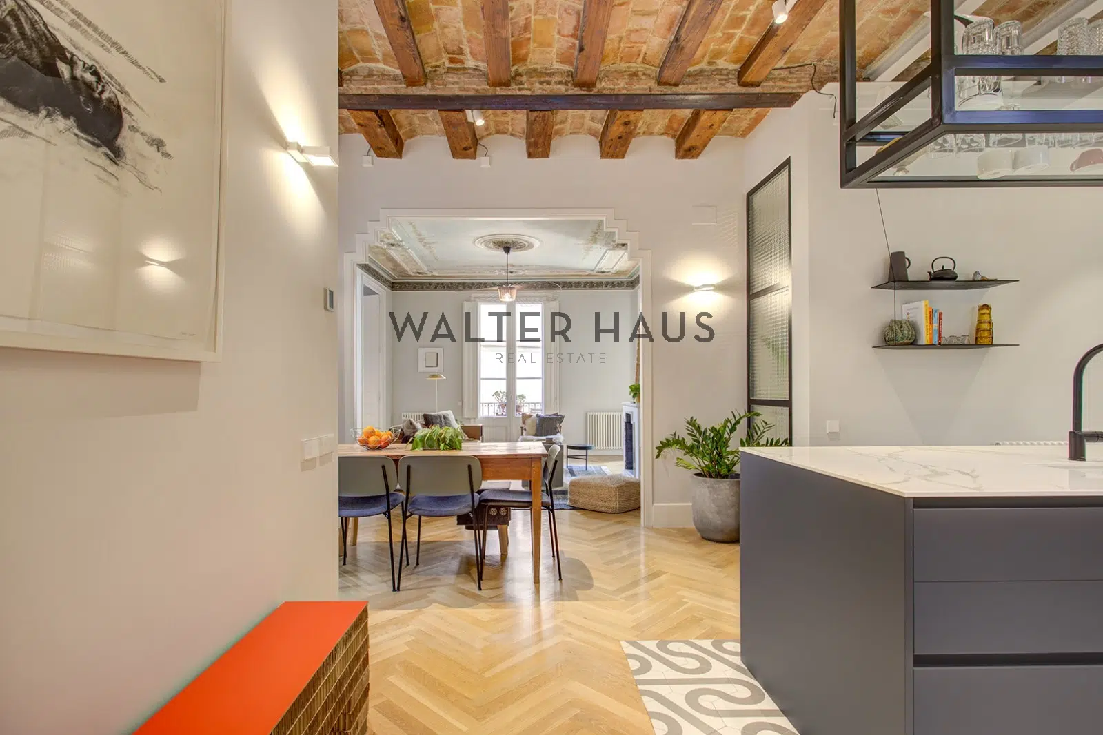 Exclusiva vivienda cuenta con 116 m² construidos y ha sido completamente reformada con materiales de alta calidad. Situado en una elegante finca regia con ascensor, servicio de conserjería y terraza. El piso combina el encanto arquitectónico clásico con un diseño interior moderno y funcional, ideal para quienes buscan una propiedad sofisticada en el centro de Barcelona.