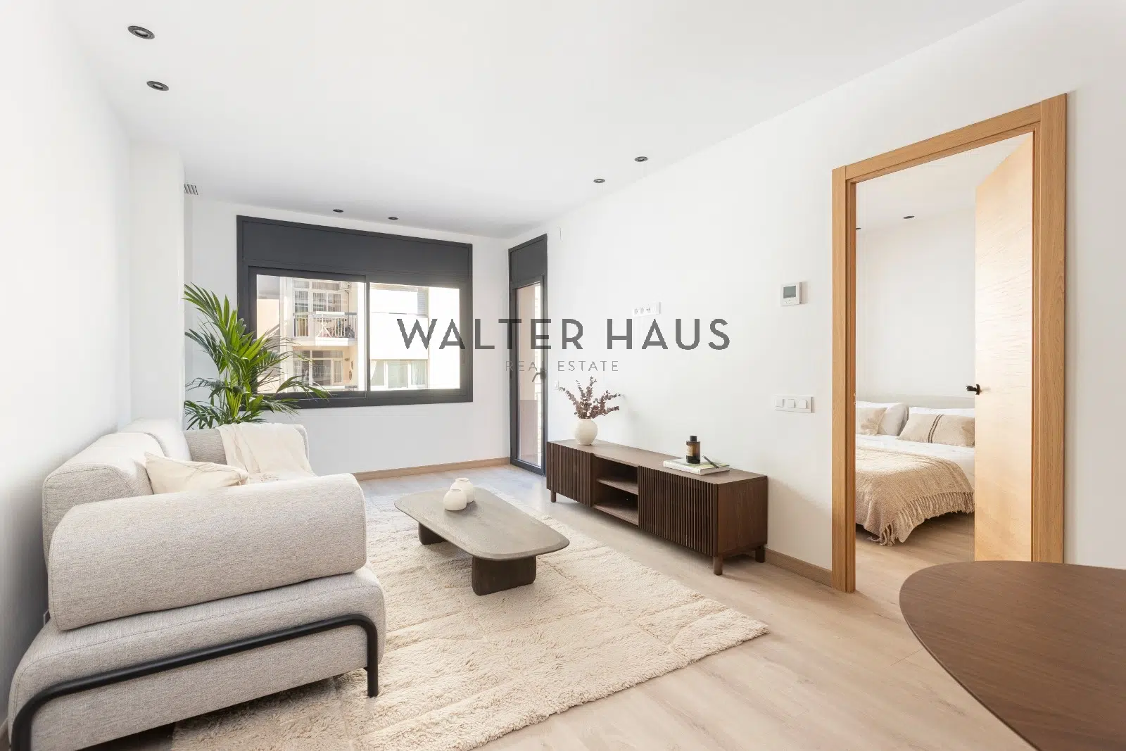 El salón-comedor, generoso en espacio, dispone de un gran ventanal que favorece la entrada de luz natural y conecta con el balcón-terraza. La cocina abierta se integra de forma armoniosa gracias a una península funcional y un diseño moderno. Está equipada con electrodomésticos Bosch y cuenta con encimera Dekton by Cosentino en acabado mate. Las tres habitaciones se han proyectado pensando en la versatilidad: una suite luminosa con baño propio y armarios, una habitación doble también con armarios y una individual ideal como dormitorio adicional, espacio de trabajo o zona de invitados. Los dos baños presentan revestimientos porcelánicos mate, grifería empotrada e iluminación LED. Entre sus equipamientos destacan el aire acondicionado por conductos frío-calor Mitsubishi y los cerramientos de aluminio con doble y cuádruple acristalamiento para un mejor aislamiento térmico y acústico. Incluye además una plaza de parking para coche pequeño o moto en la misma finca.