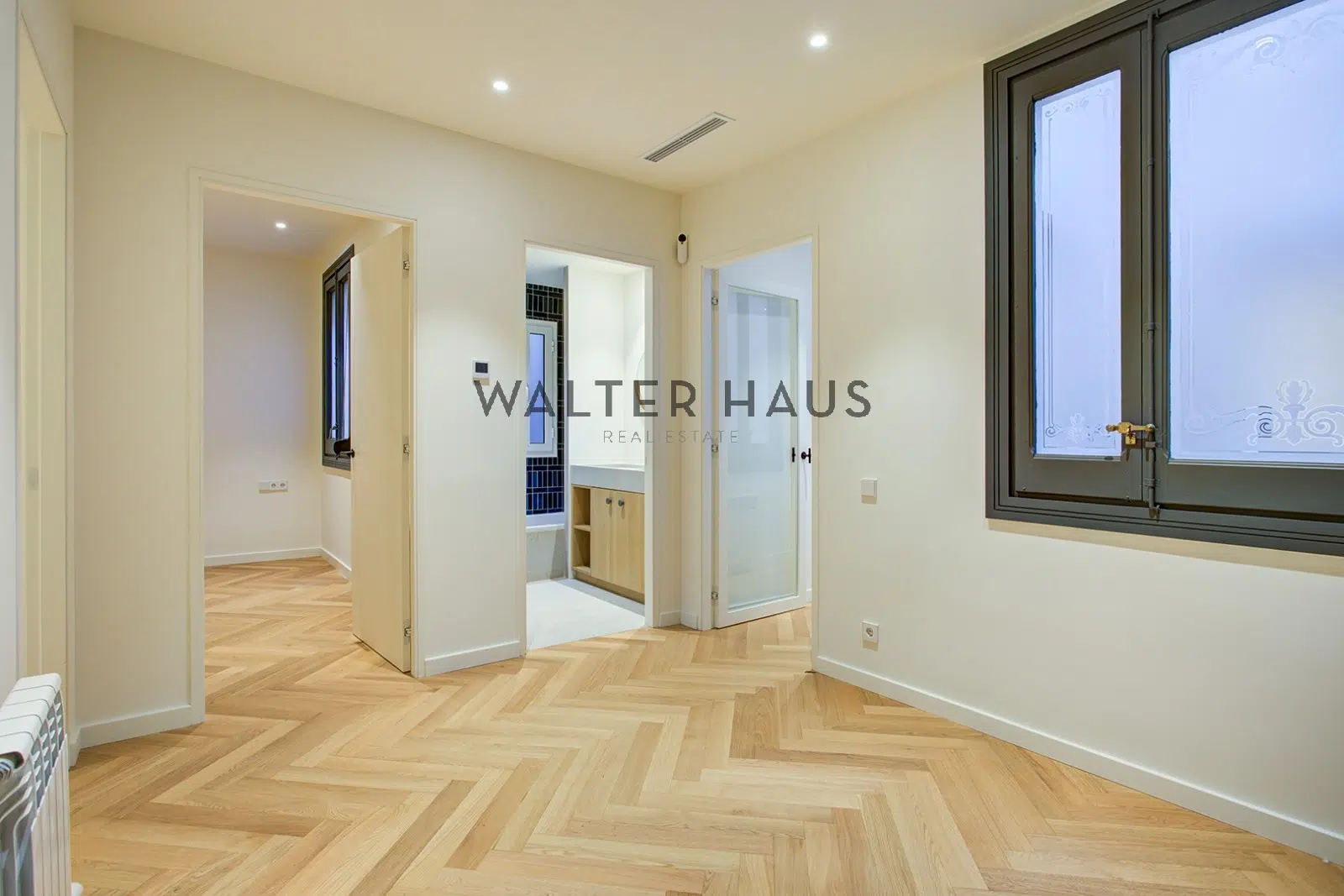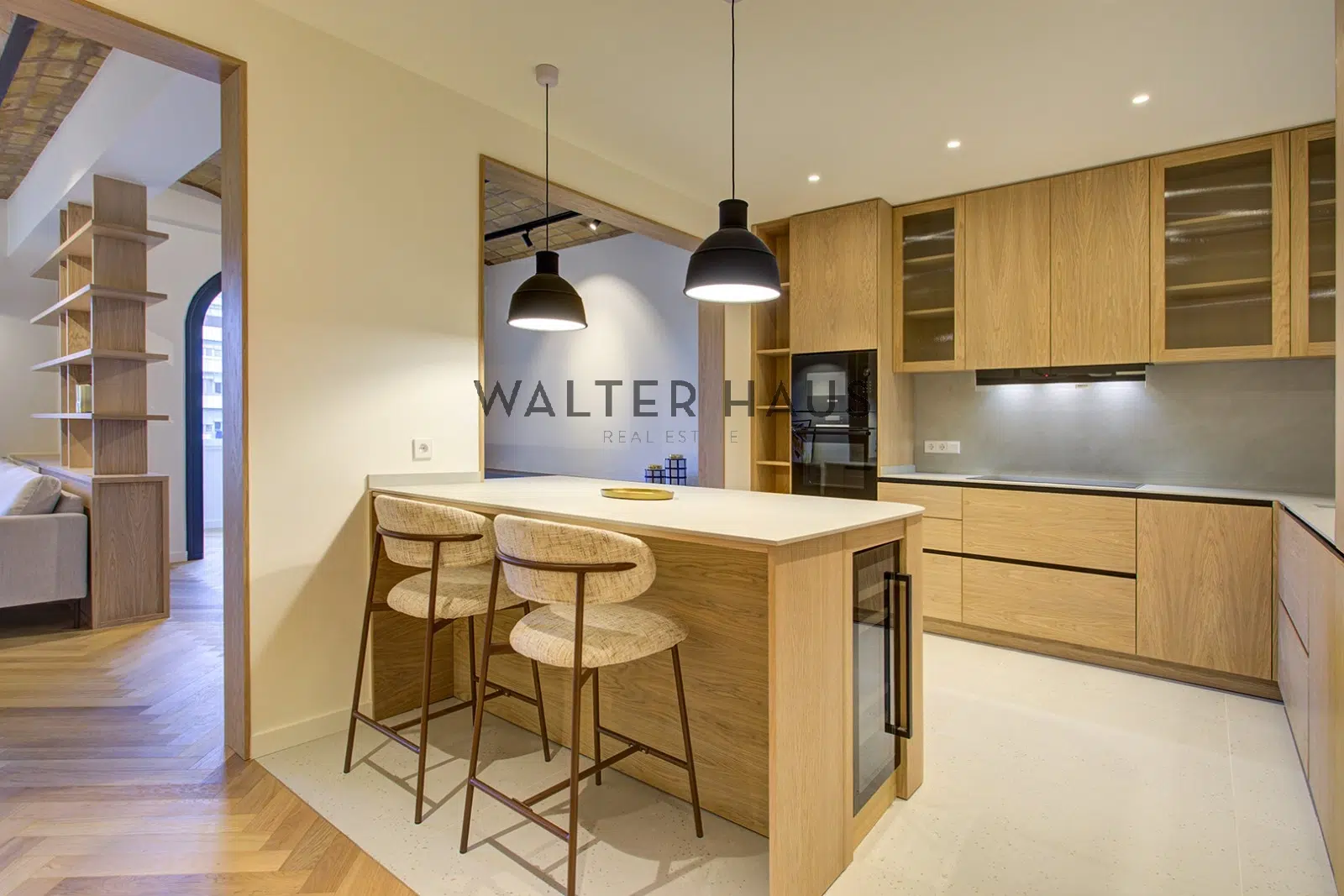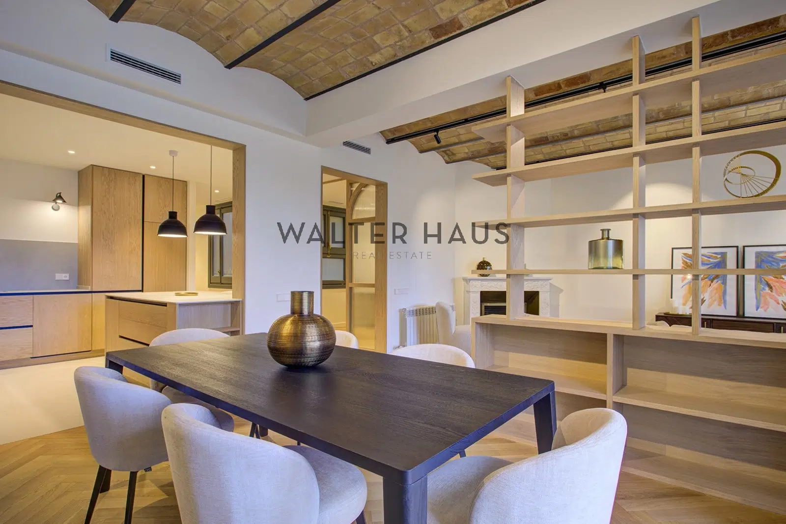El interior ha sido completamente renovado con materiales de alta calidad. Los suelos de roble, los techos de volta catalana y los acabados de diseño actual crean un ambiente cálido y sofisticado. La cocina abierta, equipada con electrodomésticos Bosch y griferías italianas Zanetti Chini, se integra de forma fluida con el salón y el comedor, configurando un espacio ideal tanto para la vida cotidiana como para recibir invitados. La vivienda cuenta con cuatro dormitorios, incluida una amplia suite principal con vestidor y baño privado, tres baños completos y un estudio independiente con puertas de roble y cristal. Además, dispone de una zona de aguas, trastero en la azotea y un balcón con vistas a la calle Mallorca.